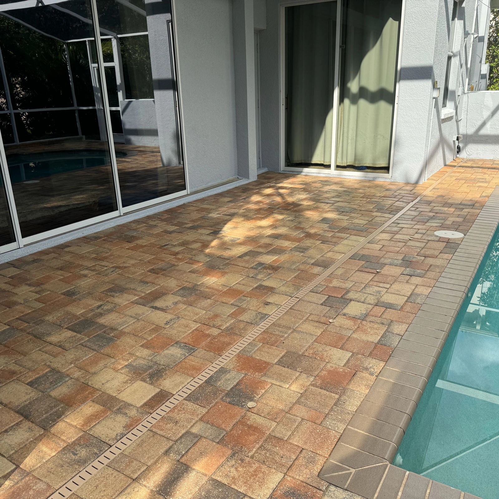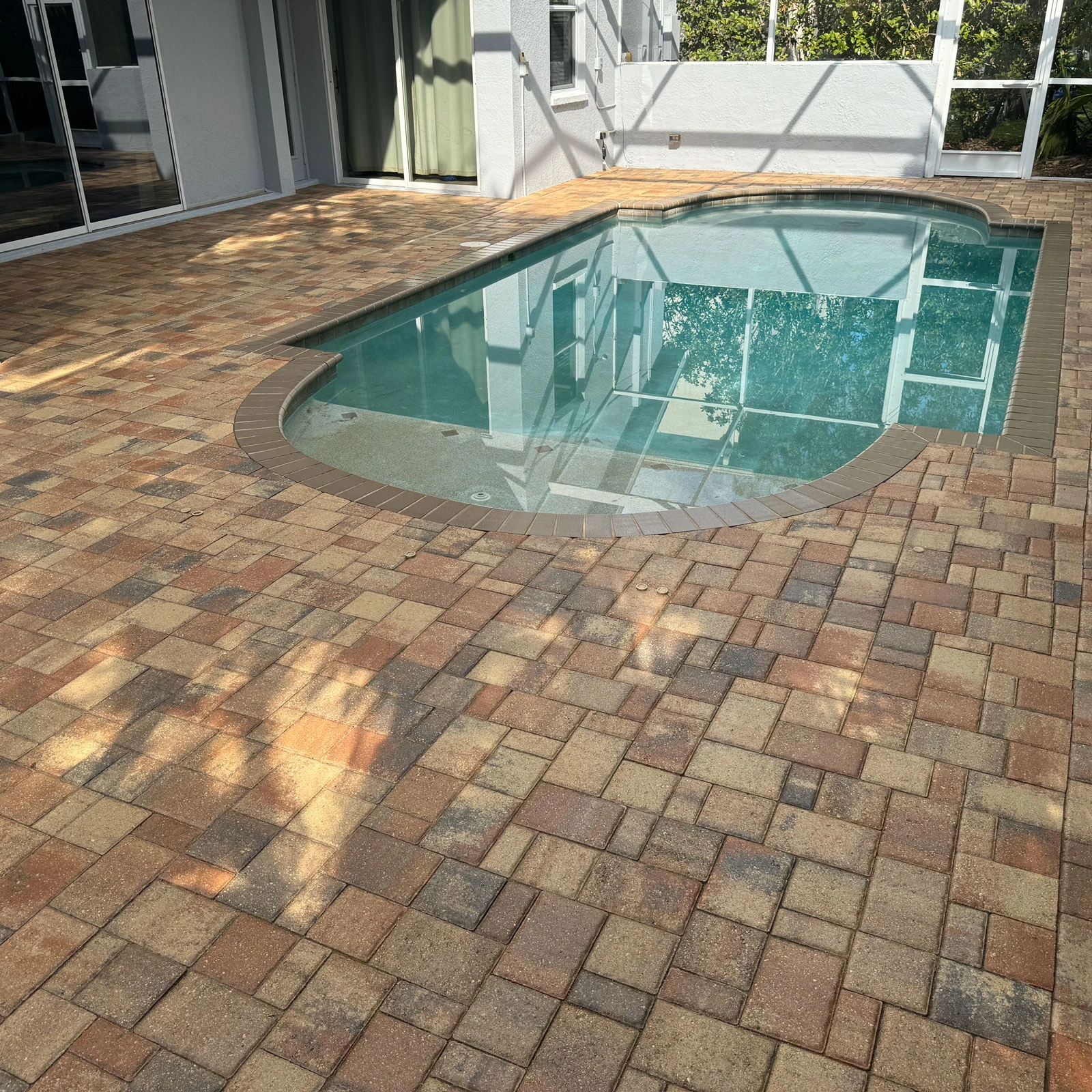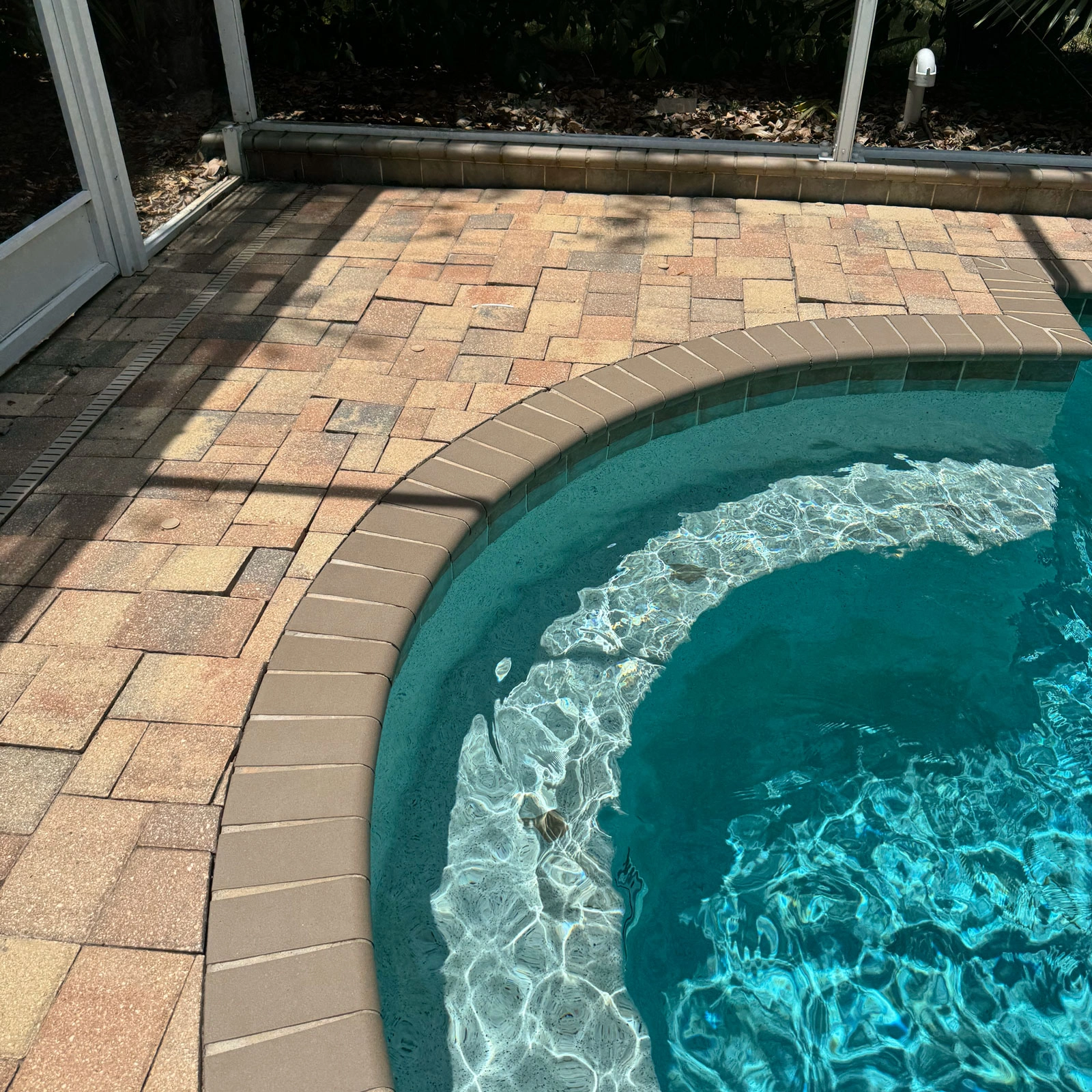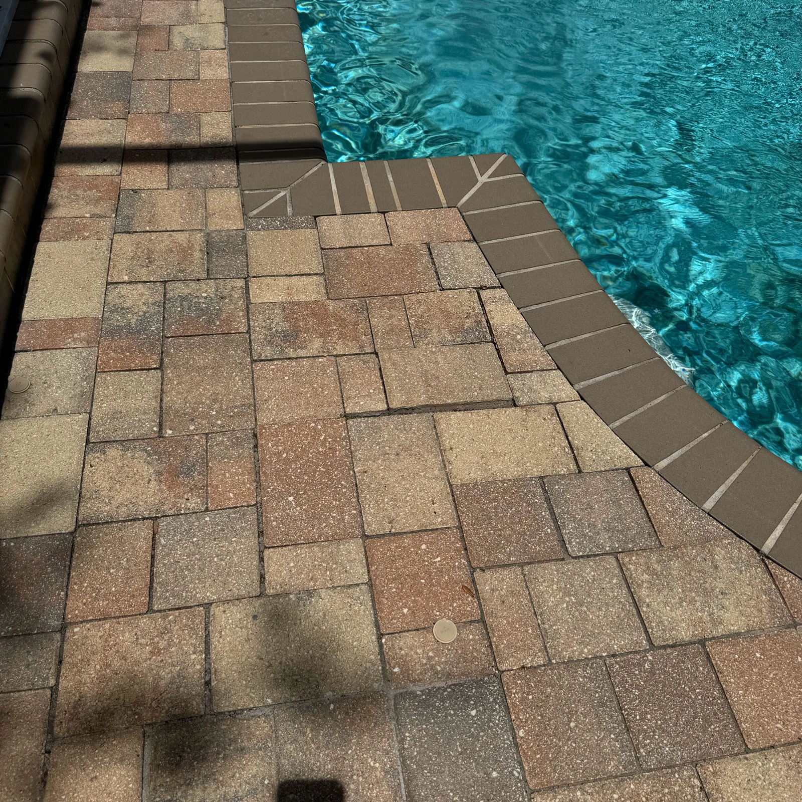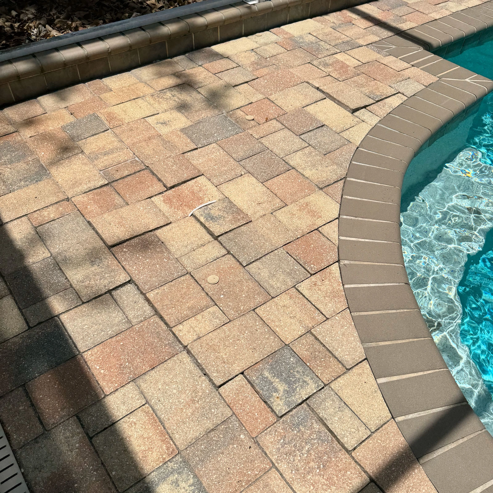 This customer contacted us with the need for paver cleaning, paver sealing and paver resetting. Some pavers that were sinking and raised on their pool deck. We removed & regraded the floor, reset the pavers, sanded them back in, & finally locked in a durable finish with two seal coats of Trident Cat 5. Swipe to see the before. Another Starshine Surfaces job complete